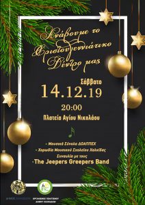 Ξεκινούν οι εορταστικές εκδηλώσεις των Χριστουγέννων σε όλη την επικράτεια του Δήμου Χαλκιδέων, που διοργανώνει ο Οργανισμός Πολιτισμού (ΔΟΑΠΠΕΧ), σε συνεργασία με τις Δημοτικές μας Ενότητες-Κοινότητες και με την αμέριστη συμπαράσταση των τοπικών συλλογικών και ιδιωτικών φορέων πολιτισμού, επιπλέον των εθελοντικών ανεξάρτητων συμμετοχών, οι οποίοι αποτελούν τον κύριο κορμό και τη ψυχή του εφετινού Χριστουγεννιάτικου […]