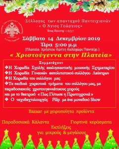 Άναμμα Χριστουγεννιάτικου Δέντρου στην ΠΑΡΑΛΙΑ ΑΥΛΙΔΑΣ Το Σάββατο 14 Δεκεμβρίου 2019 και ώρα 19:30, η Δημοτική Κοινότητα Παραλίας, σε συνεργασία με το Σύλλογο Γονέων & Κηδεμόνων του Δημοτικού και το Σύλλογο «ΥΡΙΑ», θα πραγματοποιήσει την «τελετή Ανάμματος του Χριστουγεννιάτικου Δέντρου», στην Παραλία Αυλίδας, στην κεντρική πλατεία. Άναμμα Χριστουγεννιάτικου Δέντρου στο Καλοχώρι-Παντείχι Το Σάββατο 14 Δεκεμβρίου […]