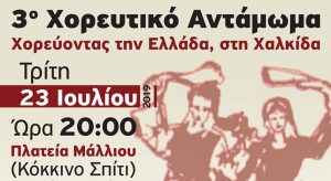 « ΕΥΡΙΠΕΙΑ 2019» Στα πλαίσια του πολιτιστικού προγράμματος «ΕΥΡΙΠΕΙΑ 2019», με τη συμπαράσταση του Οργανισμού Πολιτισμού του Δήμου Χακιδέων (ΔΟΑΠΠΕΧ), θα πραγματοποιηθούν οι παρακάτω εκδηλώσεις και εκθέσεις. Τρίτη 23 Ιουλίου 2019 στις 9 μ.μ.: «3ο ΧΟΡΕΥΤΙΚΟ ΑΝΤΑΜΩΜΑ…Χορεύοντας την Ελλάδα», στην πλατεία Μάλλιου (Κόκκινο Σπίτι). Ο Χορευτικός Όμιλος Χαλκίδας, με τη συμπαράσταση του Οργανισμού Πολιτισμού του […]