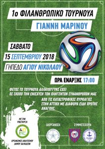 1ο Φιλανθρωπικό Τουρνουά στη μνήμη του Γιάννη Μαρίνου Α.Ε. Ληλαντίου Η ομάδα μας αποφάσισε και κάθε χρόνο πριν την έναρξη του πρωταθλήματος θα διοργανώνει προς τιμήν του Γιάννη ένα τουρνουά που θα έχει φιλανθρωπικό σκοπό. Το φετινό τουρνουά θα γίνει στις 15/9 στο Γήπεδο Αγίου Νικολάου και ώρα 17:00 μεταξύ των ομάδων ΑΣ Ευβοϊκός Αγίου […]