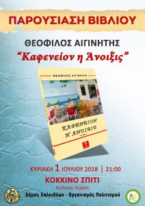 «Καφενείον η Άνοιξις» Παρουσίαση Βιβλίου του Θεόφιλου Αιγινήτη Στα πλαίσια των Πολιτιστικών Εκδηλώσεων «Ευρίπεια 2018», ο Δημοτικός Οργανισμός Αθλητισμού, Πολιτισμού και Περιβάλλοντος (Δ.Ο.Α.Π.Π.Ε.Χ.) παρουσιάζει το βιβλίο του Χαλκιδέου συγγραφέα, Θεόφιλου Αιγινίτη με τίτλο: «Καφενείον η Άνοιξις». Η παρουσίαση θα γίνει, την Κυριακή 1 Ιουλίου 2018 και ώρα 21:00, στον αύλειο χώρο του Κόκκινου Σπιτιού, με […]