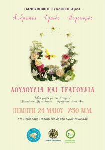 Ο Πανευβοϊκός Σύλλογος Γονέων, Κηδεμόνων & Φίλων ΑμεΑ «Άνθρωπος – Ελπίδα – Πολιτισμός», σε συνεργασία με τον Δ.Ο.Α.Π.Π.Ε.Χ., διοργανώνει μια γιορτή για τον αποχαιρετισμό της άνοιξης. Οι περιπατητές της οδού Αβάντων και όχι μόνο, το βραδάκι της Πέμπτης 24 του Μάη, θα βρεθούν μπροστά σε μια ευχάριστη έκπληξη. Τα παιδιά και οι εθελοντές του Συλλόγου […]