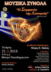 Τα Μουσικά Σύνολα του Δ.Ο.Α.Π.ΠΕ. Χαλκίδας παρουσιάζουν την συναυλία “Η ΣΥΜΦΩΝΙΑ ΤΗΣ ΛΕΥΤΕΡΙΑΣ’’- Ελληνική σουίτα, την Τετάρτη 21 Μαρτίου στις 20.30 στο θέατρο Παπαδημητρίου. Μια μουσική περιγραφή ντυμένη με δυνατούς στίχους Μεγάλων Ελλήνων ποιητών. Θα ακουστούν έργα σε ποίηση των Γ. Ρίτσου, Οδ. Ελύτη, Διον. Σολωμού, Ν. Γκάτσου, Μ. Ελευθερίου και μουσική των Μ. Θεοδωράκη, […]