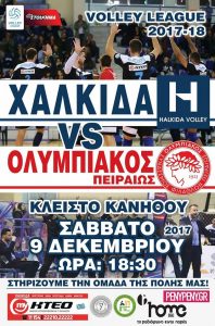 Τον Ολυμπιακό υποδέχεται το Σάββατο, 8 Δεκεμβρίου στις 6.30 το απόγευμα, ο Ηρακλής Χαλκίδας στο πλαίσιο της 7ης αγωνιστικής της Volley League, στο Κλειστό Γυμναστήριο “Τάσος Καμπούρης” Κανήθου. Μετά από έξι αγωνιστικές ο Ολυμπιακός βρίσκεται στην κορυφή με 19 βαθμούς, ο ΠΑΟΚ ακολουθεί με 14, ο Φοίνικας Σύρου έχει 13 και ο Ηρακλής Χαλκίδας 12.