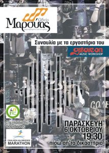 Συναυλία διοργανώνει το Ωδείο Μαρσύας με τα εργαστήρια του “grooveon – music workshop”, σε συνεργασία με τον ΔΟΑΠΠΕΧ, στα πλαίσια ευαισθητοποίησης των πολιτών για συμμετοχή στον 4ο Λαϊκό Αγώνα Δρόμου Αγάπης, που θα διεξαχθεί την Κυριακή 8 Οκτωβρίου. Η συναυλία θα πραγματοποιηθεί την Παρασκευή 6 Οκτωβρίου, στις 7.30 το απόγευμα, πίσω απο τα δικαστήρια.